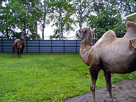 やってきたメス(右)はまだ冬毛が残ってボロ雑巾をまとっているようです。